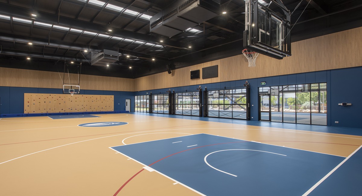 The state-of-the-art development centres around a 9-metre-high indoor gymnasium featuring an 800m² multi-purpose court, capable of accommodating a wide range of sports and activities including netball, basketball, indoor soccer and indoor bouldering. Complementing the indoor space is a new outdoor undercover court, providing additional flexibility for training, recreation and school sporting programs throughout the year.