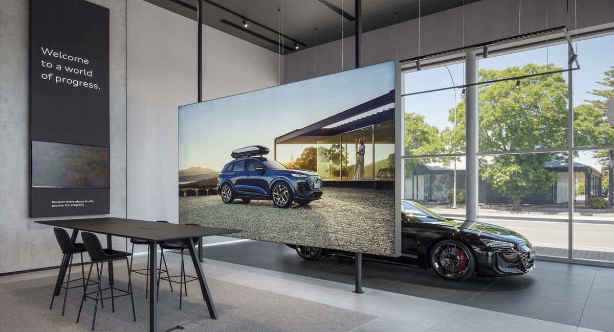 Building two houses the Audi showroom, a private customer lounge, amenities and a handover bay on the ground floor with offices and staff areas on the mezzanine level.